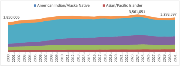 Since the majority of all postsecondary students tend to be enrolled in public institutions [ii], the planning for this shift will have an effect on both institutions and state policymaking. Planners in several states are already realizing the need to shift away from incentives encouraging accommodation to demand growth—like access-focused initiatives—which were appropriate to the circumstances of the late 1990’s and early 2000’s (see graph below). Recognizing the demographic shifts, some state planners are beginning to use performance funding models that encourage success in serving traditionally underserved populations. These underserved populations must be served in much larger numbers, and they must have their skills upgraded periodically, if workforce needs are to be met.