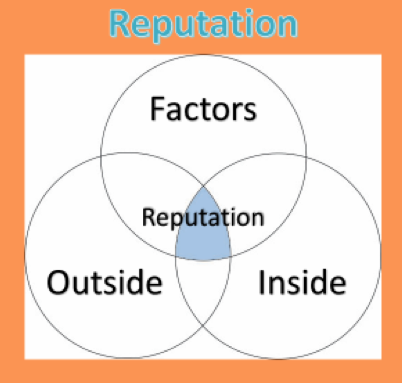 It’s first important to understand reputation. Reputation is defined as “an opinion about an entity, typically as a result of social evaluation on a set of criteria.” There are many factors that influence reputation from both inside and outside of the unit. Most of these factors represent pros/cons or opposites. Some examples are: facts and gossip; real and false data; common opinion (“it is said that …”); subjective and objective options; reactions, lies and truth; and direct observation and assumptions. The following chart shows the inter-relationships among these factors and where they originate, inside or outside of the CE unit.