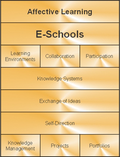 Affective learning e-schools exist on computers. They do not require dedicated structures. They are based on the organization of ideas into courses and programs using the knowledge management frameworks described in previous articles. E-schools are distinguished by their focus on purposeful learning always working from the perspective of meaningful engagement of the learner.