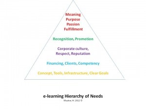 As you can clearly see, the LOVE part of the corporate e-Learning environment falls clearly in the middle… once the foundational work is done. However, the good feelings of the LOVE component aren’t what build the individual or company any more than the top tiers satisfy the basic needs of the foundation. All things in good time: with steady and deliberate planning. But it’s more than just the feeling of LOVE that is going to get you where you want to be.