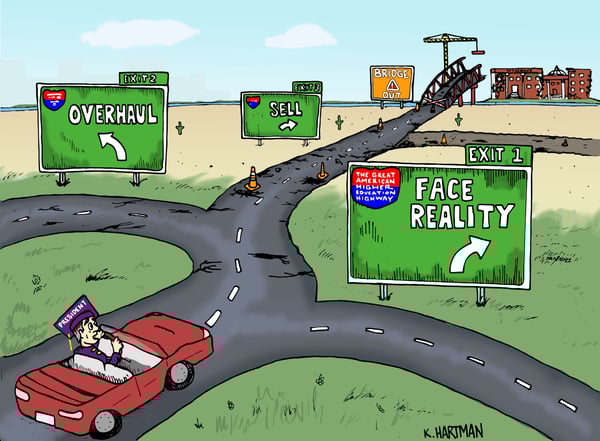 When the CFO from Harvard [University] states that their business model is unsustainable — and at the last count, they had a $33 billion endowment — it’s time for all colleges to examine where they are on the highway and seek the next exit because, for many, the bridge is out at the end of the road.