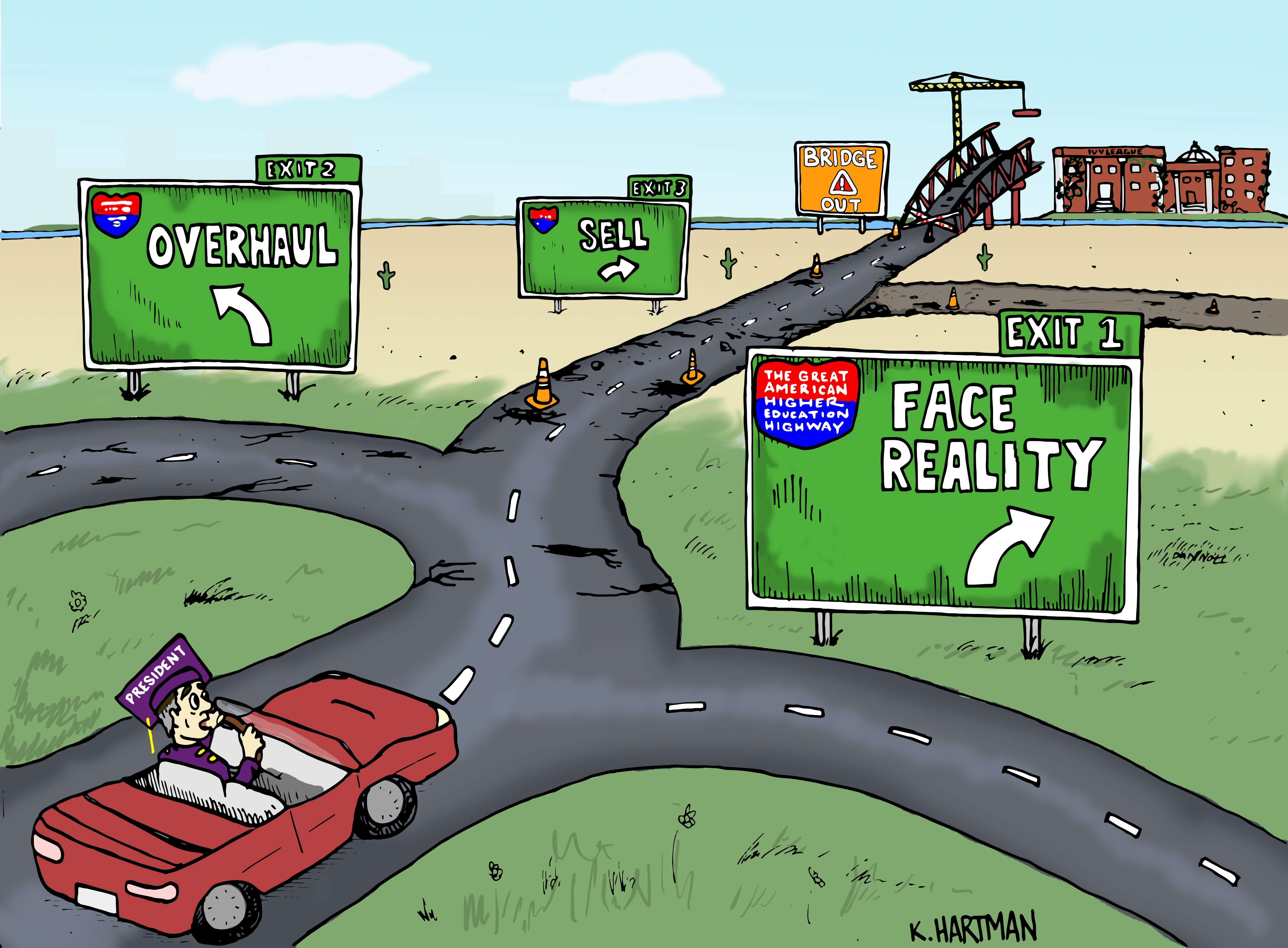 That gets into things such as mergers and acquisitions. You’re going to see states actually selling their institutions to the private sector. Take a look at other similar models where states have sold parks, bridges, prisons and roads. You don’t necessarily want to get to exit three; you really want to get off the road before. That’s why I’m encouraging institutions to use exit one, but you’ve got to start with honesty and truthfulness with your stakeholders.