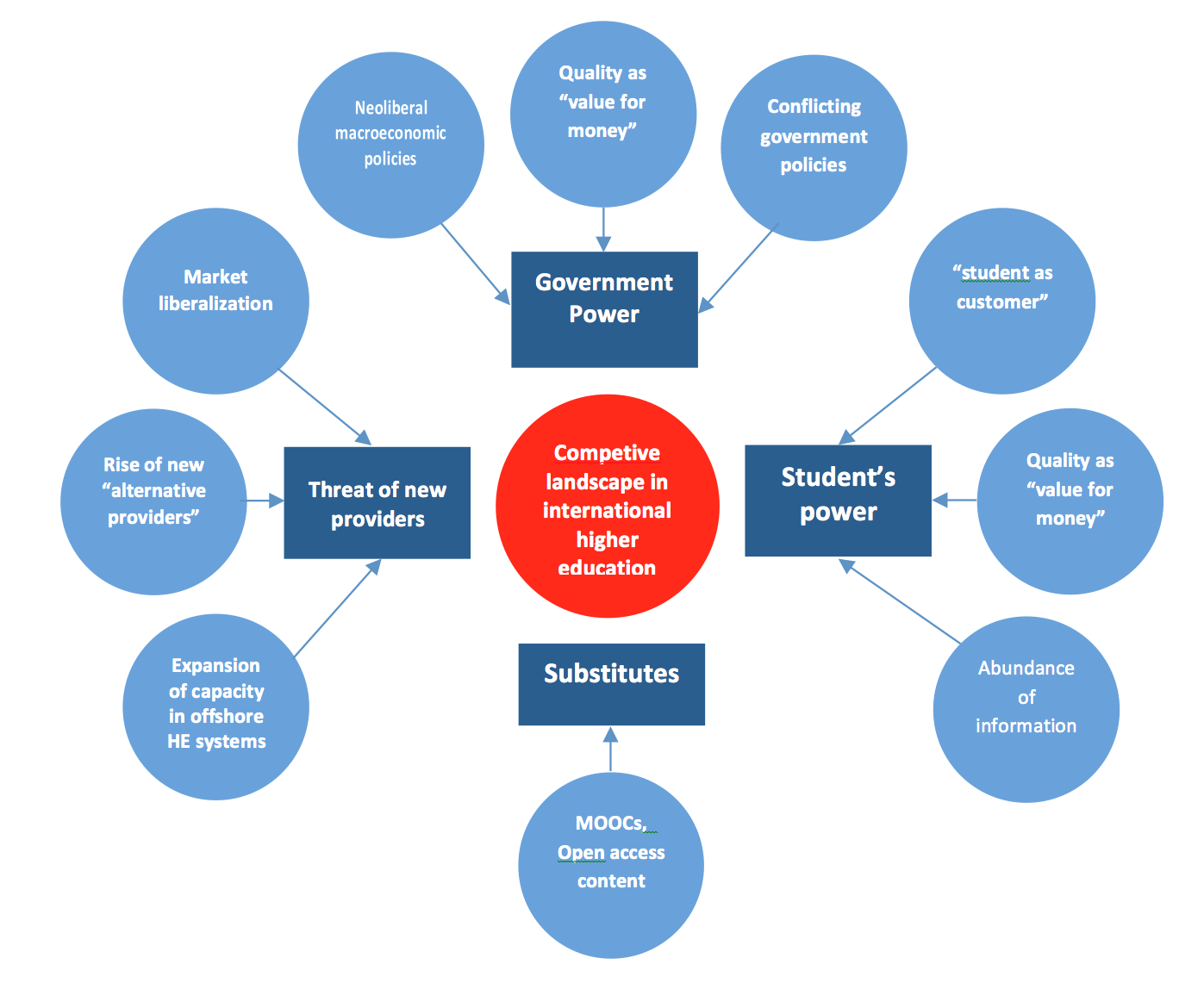 What’s obvious to everyone involved in higher ed is that, in the past decade or so, a new competitive landscape has emerged in international higher ed. This competitive landscape is shaped by a wide range of factors often neglected or considered separately. However, a comprehensive environmental analysis is required in order for one to be able to move on with any considerations and suggestion on future strategic directions for higher ed institutions.