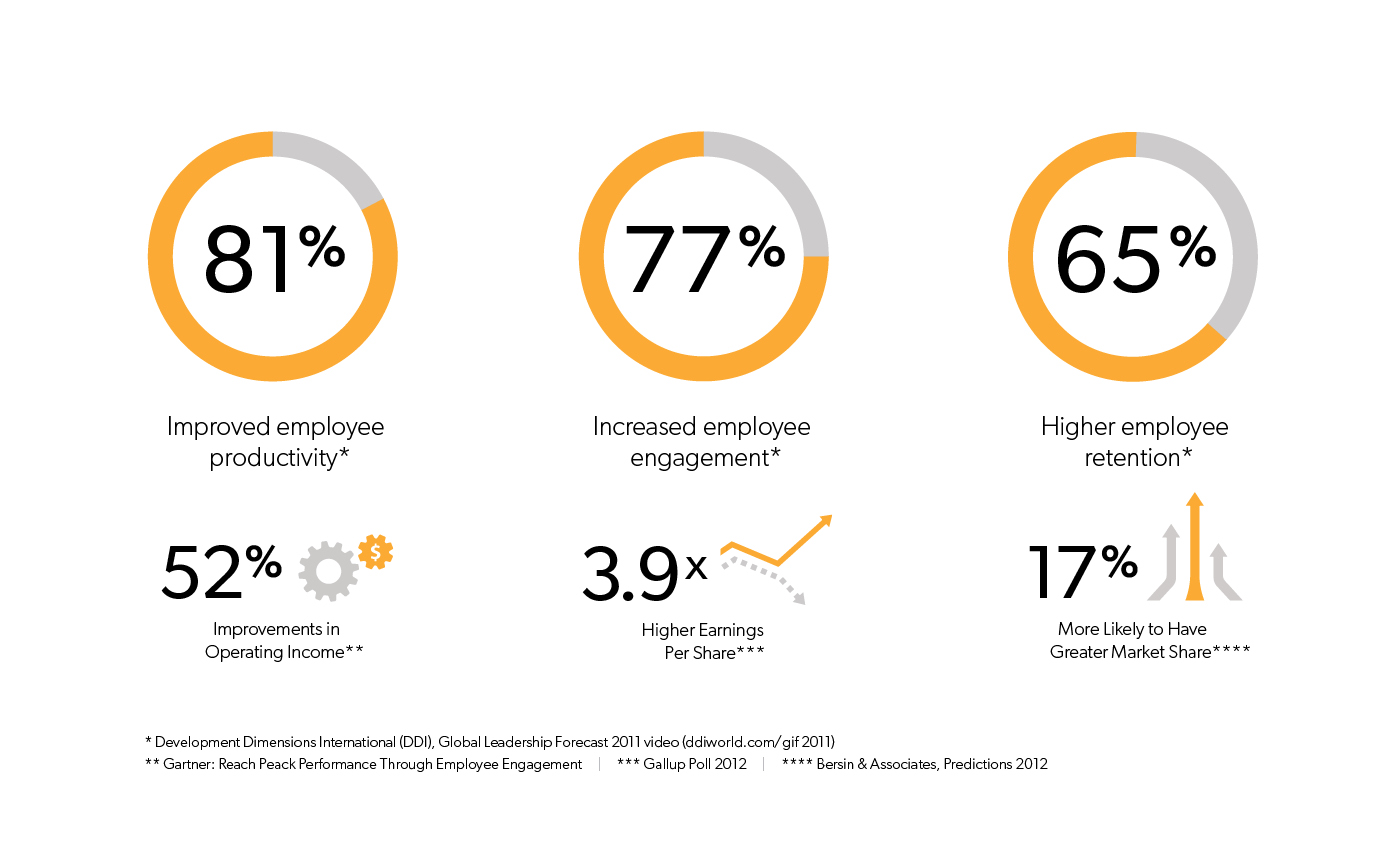 - Enhanced employee engagement, retention and performance;