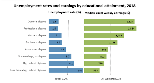 [3] U.S. Bureau of Labor Statistics, “Unemployment rates and earnings by educational attainment,” September 4, 2019. https://www.bls.gov/emp/chart-unemployment-earnings-education.htm