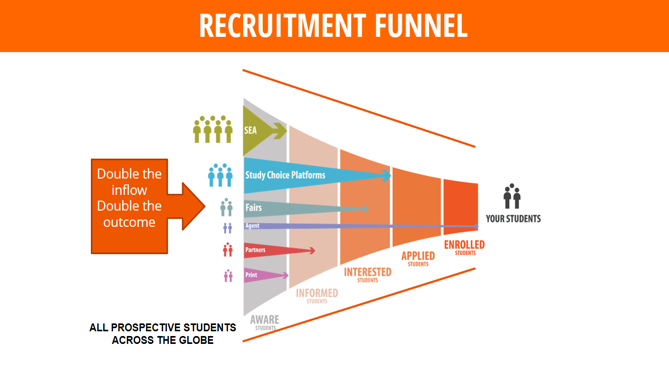 Whether that means building new partnerships with other schools, partnering with local agents, or investing in digital marketing, identifying what fits your schools’ needs and budget best is the first step. To get started, online recruitment channels like StudyPortals for example, are one of the most effective channels within the recruitment funnel. They reach a large, global audience, and provide unbiased information, and since students typically compare at least 3 different programs before they makes a decision, StudyPortals means they are well informed about your competition as well. If your school is well equipped to track results, for example with Google Analytics, even better. If you don’t do so yet, now is definitely the time!