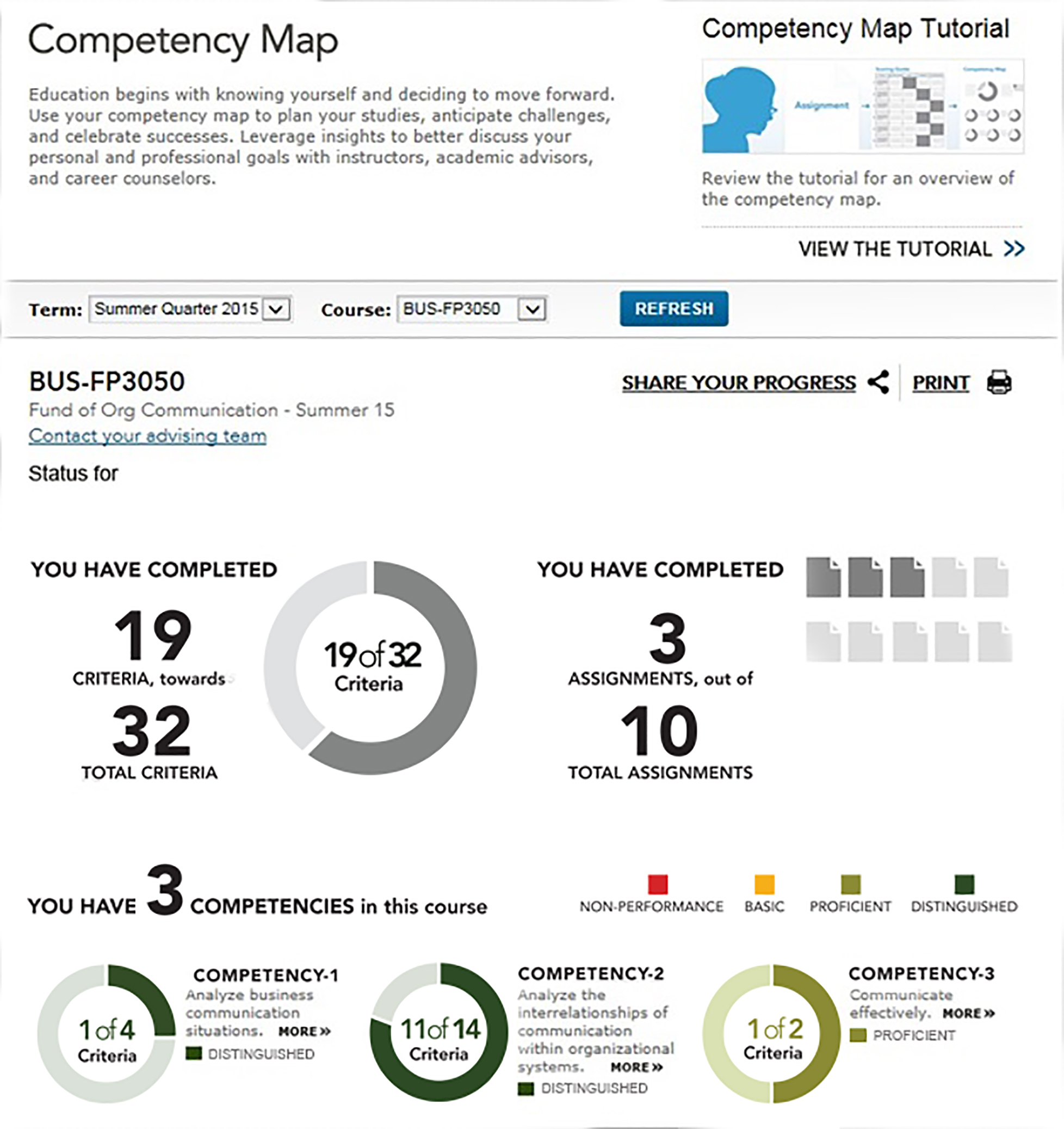 In 2017 at Capella University, millennials made up almost half of our learner base. We structure our curriculum around a competency-based-education model, specifically designed for those who want an efficient way to gain skills and knowledge to help advance their career. Students receive a Competency Map—a dashboard that displays their academic progress toward demonstrating competencies within each course. Including a competency, or similar record, in resumes and portfolios provides evidence to employers of what job seekers can actually do and understand in the workplace.