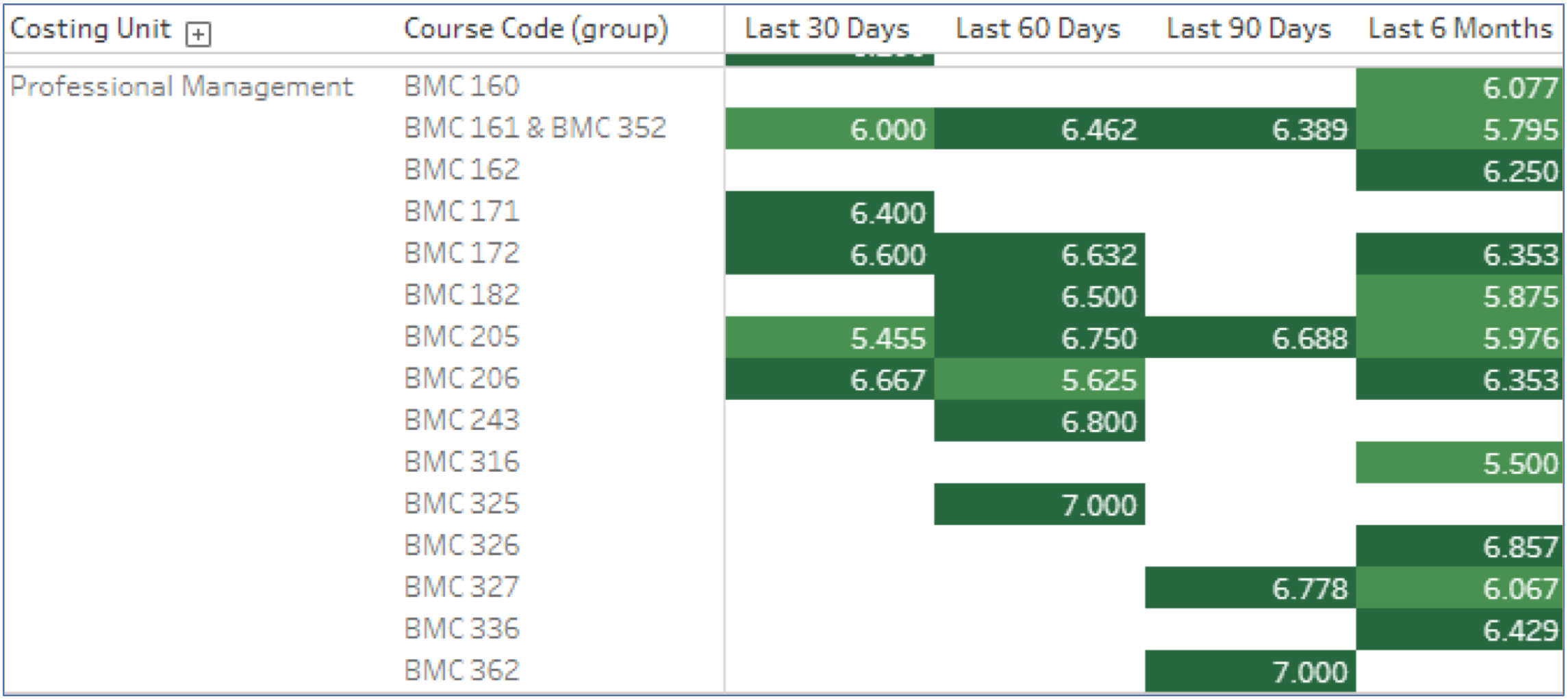 Using Tableau we’re able to aggregate the data to assess the performance of a department, program, course, section or instructor. This data provides program managers, and directors with the information at the level they need to make the important decisions such as: